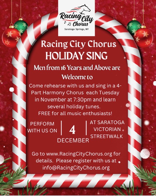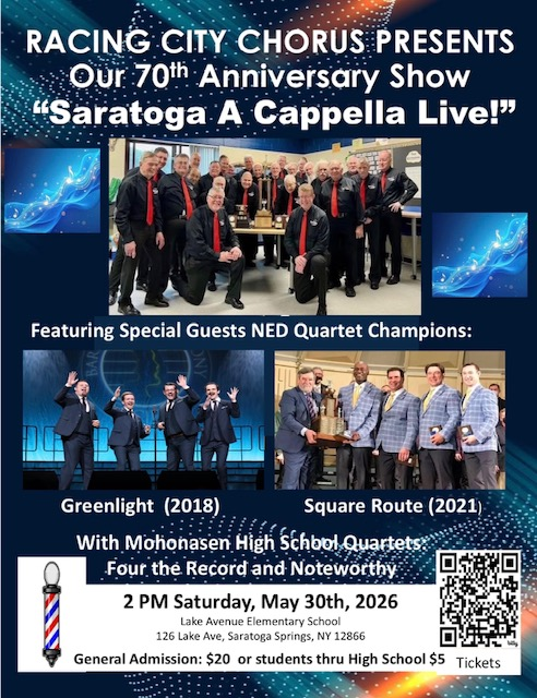Racing City Chorus is an extraordinary group of gentlemen who gather together in celebration of the art form known as barbershop music. We are a chapter of the Barbershop Harmony Society.